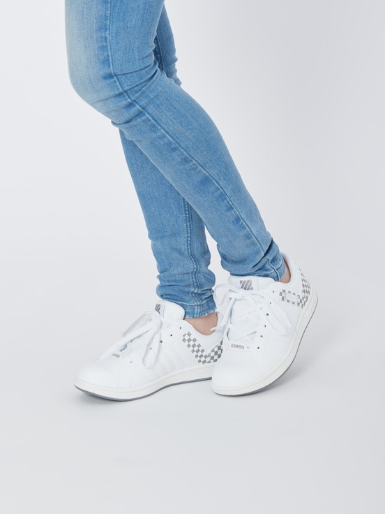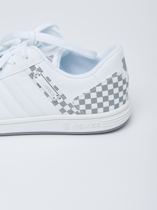 ライセンス商品の新提案。過去売れ筋であったランダールをベースに再登場。シンプルなデザインに踵カウンター部分のチェッカー柄が特徴的。