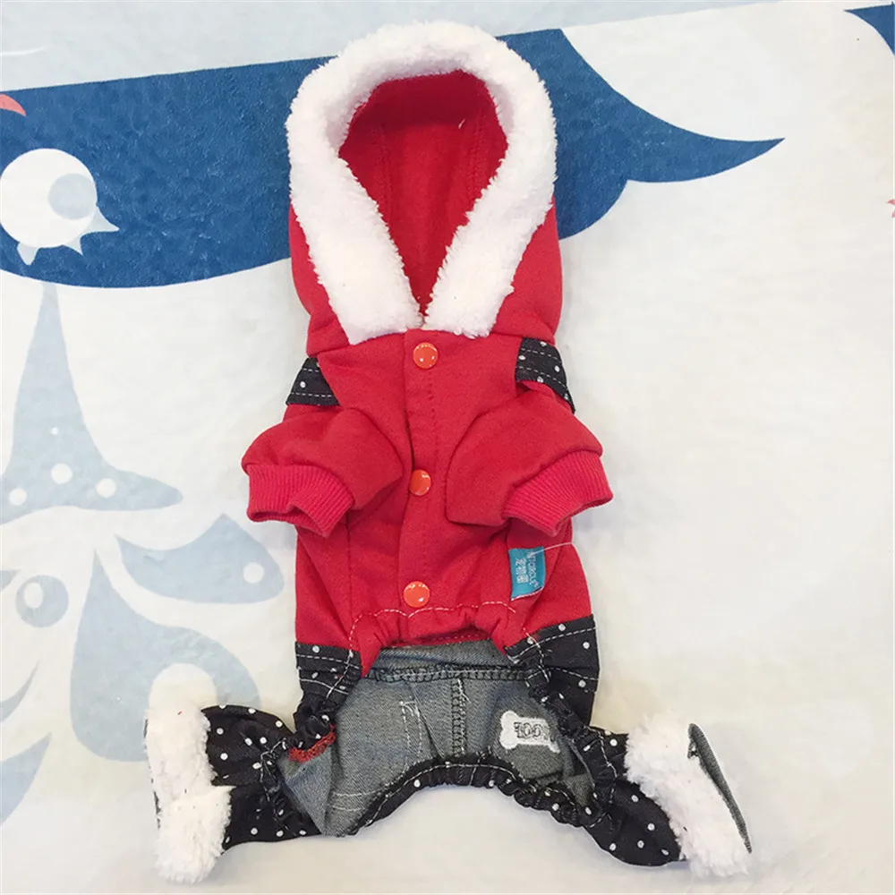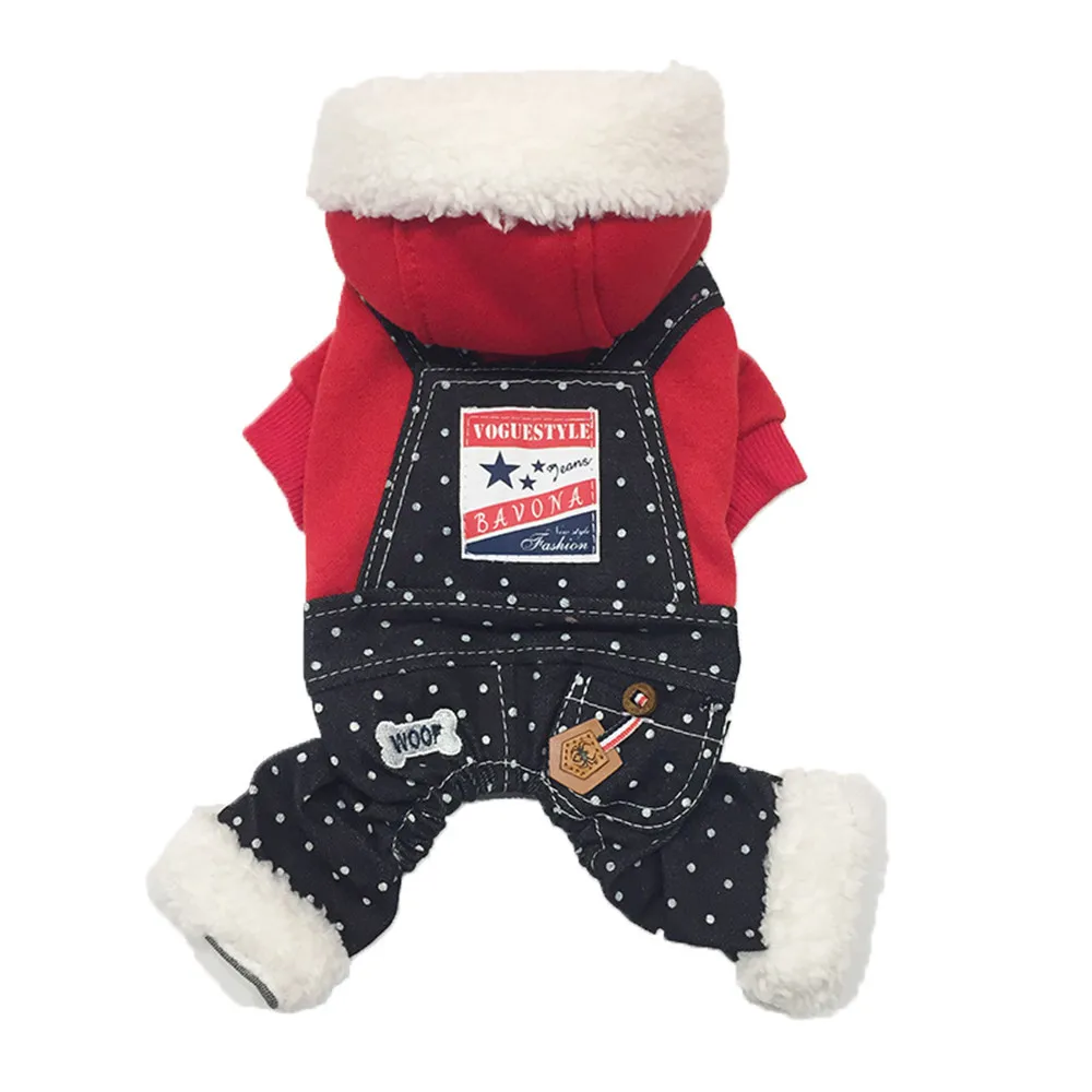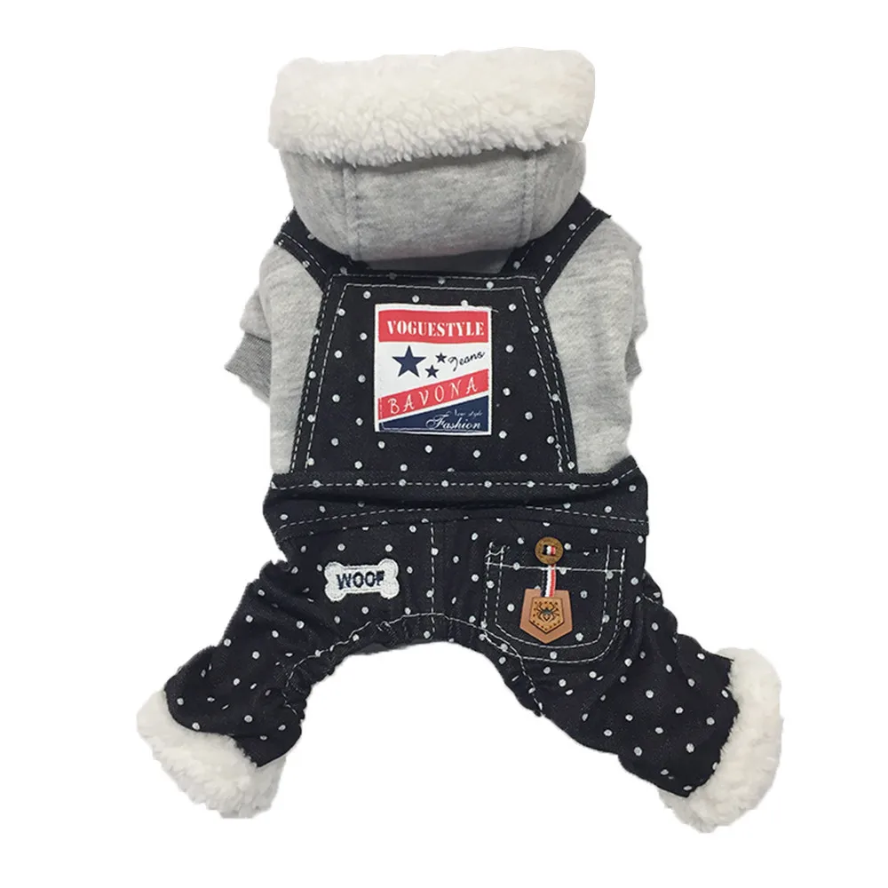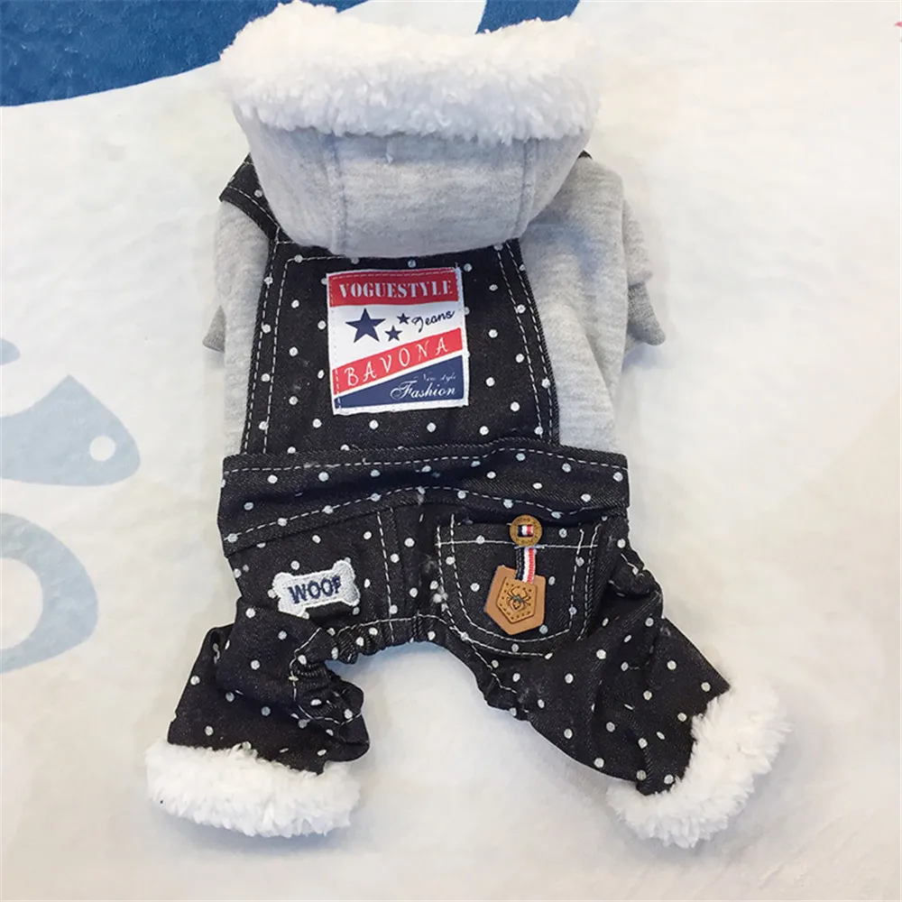 Pet Clothes Puppy Polka Dot Denim Bib Pants With Hat Autumn And Winter