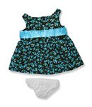 -. Feature : Blue teddy bear dress / floral fabric / satin belt attached / includes panties / fits 15 inch plush