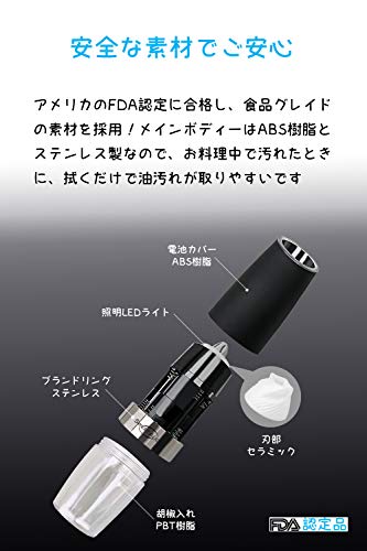 また、透明なABS樹脂を採用しており、胡椒の残量が確認しやすです。万が一落としても簡単に壊れるこのもありません。