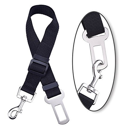 -. Feature : UNIVERSAL PET SAFE BELT:it attaches easily to your pet's harness. Works with dogs, cats, raccoons, skunks, pot bellied pigs or any animal that can wear a harness and ride inside a vehicle / ADJUSTABLE:the Width is 2.1cm/0.82inch and the adjustable Length can be extended from 18 inch to 29.5 inch,fits all kinds of vehicles / Easy to Use:Simply clip this Seatbelt onto your pet's harness and snap the belt buckle right into the seat belt receptacle of your vehicle. / SAFE AND COMFORTABLE:Seat Belt comes with a swivel clip,you could adjust an approP.R.Iate length to ensure that your pet could lie down or stand up comfortable amd safe. / HIGH QUALITY MATERIAL:this Adjustable Dog Safety Seatbelt is made of durable nylon fabric and high quality metal buckle,so that its strong enough to ensure the safe of your pet when you are driving