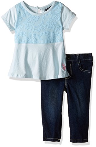 -. Binding : Apparel -. Brand : U.S. Polo Assn. -. Department : baby-girls -. Feature : Lace overlay on front peplum top / Stretch denim jeans have elastic back waistband / Buttons, shanks and rivet logo embossed / Embroidered logos -. Label : US Polo Assn. Children's Apparel -. Manufacturer : US Polo Assn. Children's Apparel -. ProductGroup : Apparel -. ProductTypeName : PANTS -. Publisher : US Polo Assn. Children's Apparel -. Studio : US Polo Assn. Children's Apparel -. Title : U.S. Polo Assn. Girls' Short Sleeve Peplum Top and Stretch Denim Jean