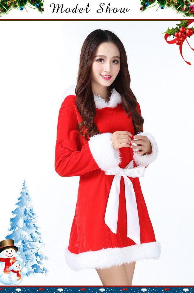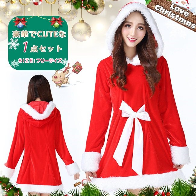 サンタ コスプレ レディース クリスマス 衣装 長袖 フェイクファー リボン フード付き ワンピース ミニ セクシー サンタクロース 仮装 変装 大人 服 サンタコス かわいい パーティーグッズ イベント用品 余興 xmas Christmas cos 女性用