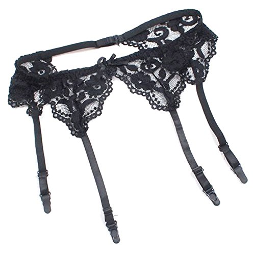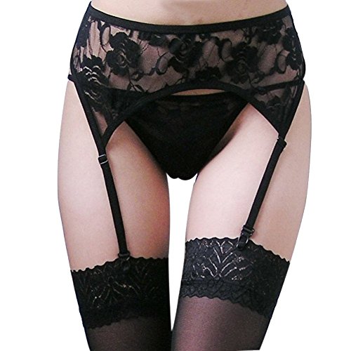 Sealike Sexy Lace Stockings with Garter Belt G-string Lingerie Set for Women with Stylus (Black)