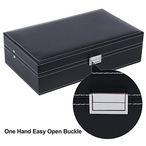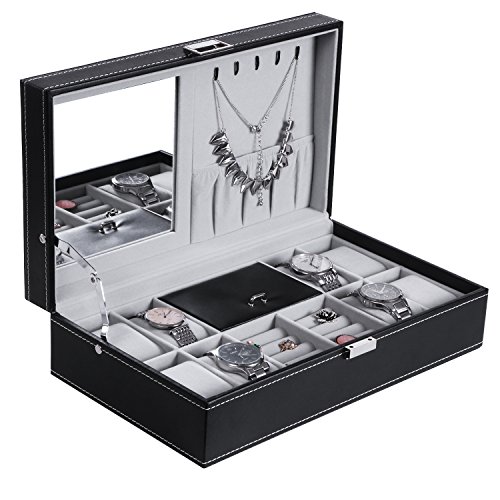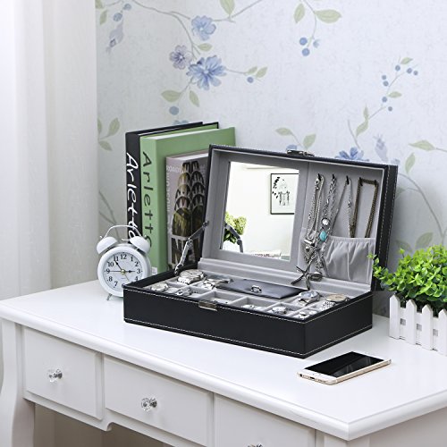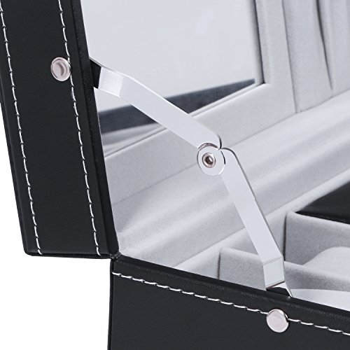 - TOP-NOTCH QUALITY & STYLISH LOOK: Made from good quality black PU leather cover, well-done seams, refined interior, smooth metal hinge, this is a sleek looking jewelry box for men or women to keep all types of jewelry, including rings and watches. Your beloved must be very happy when receiving such a nice gift at birthday or Christmas