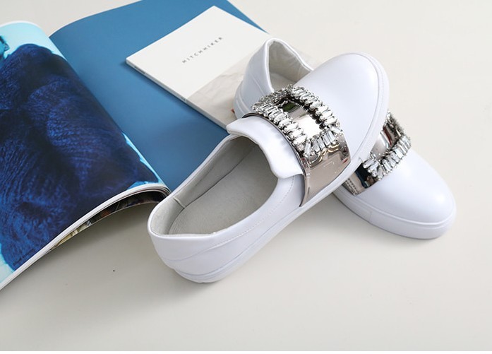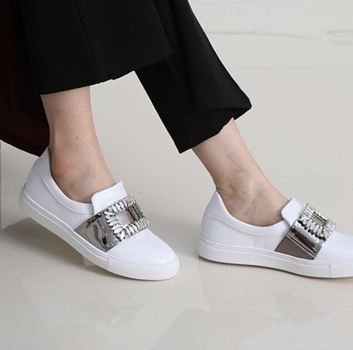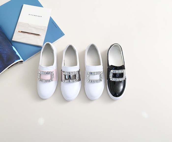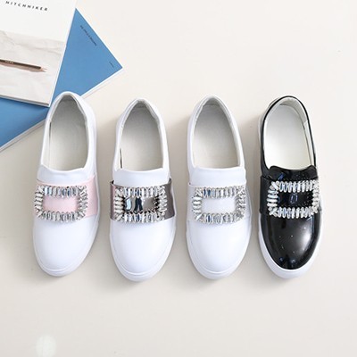 商品名:スリッポン レディース スニーカー バックル ビジュー 2018 春 ファッション 靴 婦人靴