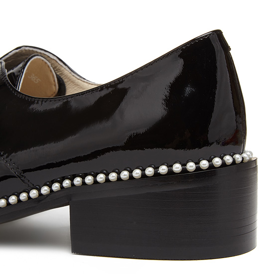 - 매니쉬한 스타일에 시그니처 진주장식을 적용해 여성스러운 로퍼.- 3cm의 굽높이와 딱딱한 선심을 사용하지 않아 부드럽고 편안한 착화감을 선사.- 끈으로 피팅을 조절할 수 있는 레이스업 스타일로 군더더기 없는 어퍼 디자인과 진주 장식이 페미닌한 무드를 연출.- 데일리로 신기 좋은 웨어러블한 아이템.