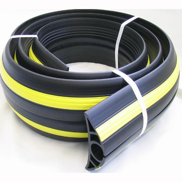 車の通行に伴うケーブルの破損や、歩行者の転倒の危険からしっかり守ります。 製造国:日本 素材・材質:軟質塩ビ 商品サイズ:185×4000×55mm 重量:16300g カラー名:黒(黄色ライン入り) ※サプライヤー直送品 ご注文後2~3営業日後の出荷となります【商品名】大研化成工業 ケーブルプロテクター 40φ×4m