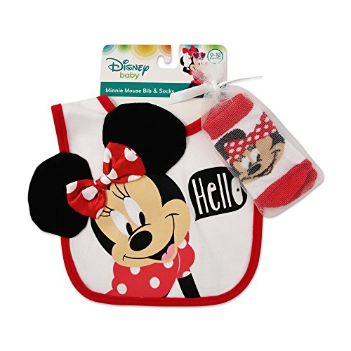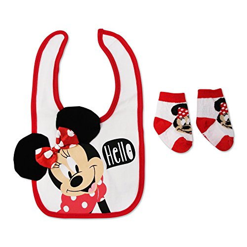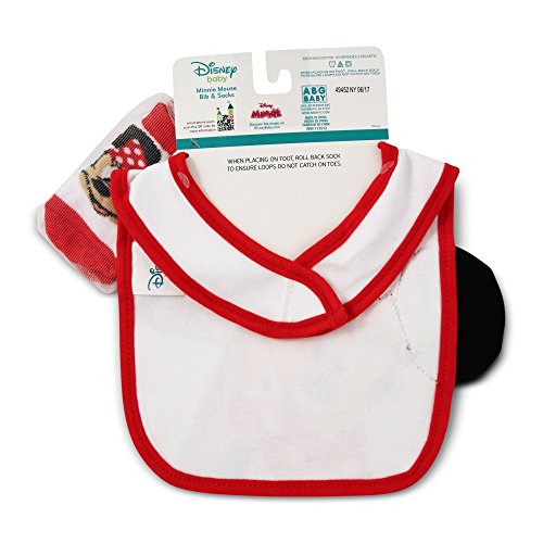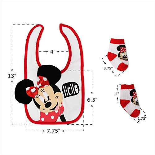-. Binding : Apparel -. Brand : Disney -. Department : baby-girls -. Feature : 2-piece set includes bib and terry booties featuring Disney minnie mouse. Officially licensed Disney product / Available in black or white this cotton bib features a contrast trim, satin bow, dimensional stuffed minnie ears and velcro closure / White and red booties are made of 74 percent cotton, 24 percent polyester, and 2 percent spandex. They feature minnie mouse imagery on the front and a Disney logo on the back / Designed for baby girls 0 to 12 months. Bib is 7.5 (w) x 11 (L) overall. Tummy is 6.5 (L) and neck is 3.6 (w). socks have a 3.75 (L) x 1.75 (w) footed with 2 (h) ankle / Booties - machine wash in cold water with like colors. Non-chlorine bleach. Tumble dry low. Bib - machine wash in cold water delicate cycle with like colors. Non-chlorine bleach. Tumble dry low -. Label : ABG Accessories Children's Apparel -. Manufacturer : ABG Accessories Children's Apparel -. Model : INX78337AZ -. PackageQuantity : 1 -. ProductGroup : Apparel -. ProductTypeName : ACCESSORY -. Publisher : ABG Accessories Children's Apparel -. Studio : ABG Accessories Children's Apparel -. Title : Disney Baby Girls' Minnie Mouse Polka Dot Cotton Dress Bib and Booties Set