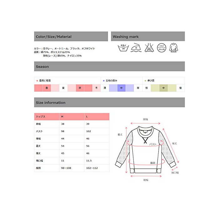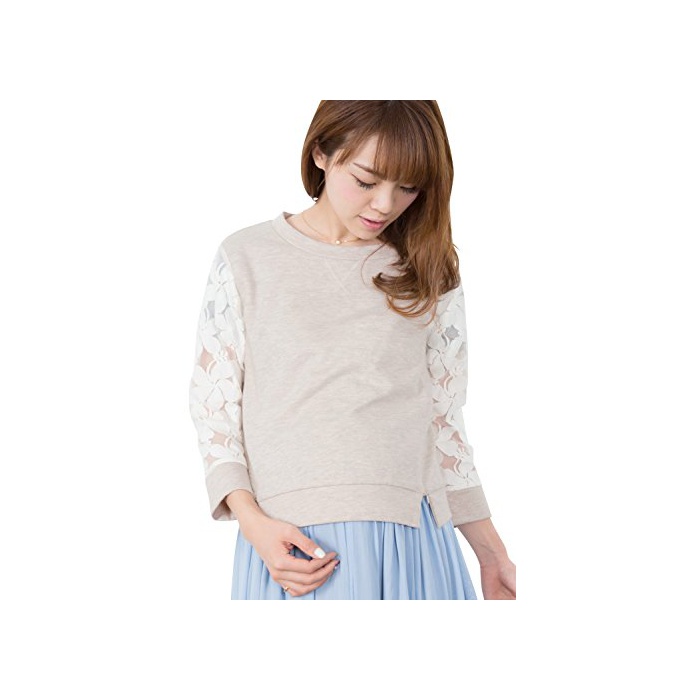 원본상품명: Sweet Mommy スウェット×レ?ス 甘辛ミックス 透け感プルオ?バ? 裏毛 授乳服 / マタニティ