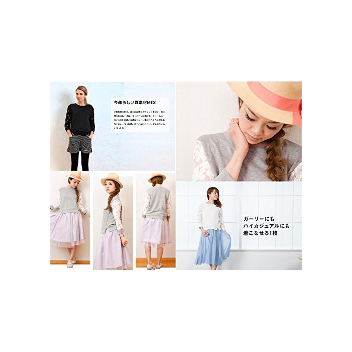 유연함(부드러움) 일까 뒤모 스웨트는 착용감도 발군.페미닌한 레이스 소매의이 소재 믹스에 숙련되어 코데를 연출.
