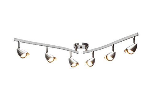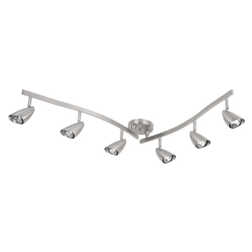 Globe Electric Grayson 6-Light Adjustable S-Shape Track Bar, Brushed Steel Finish, Halogen Bulbs Included, 59062