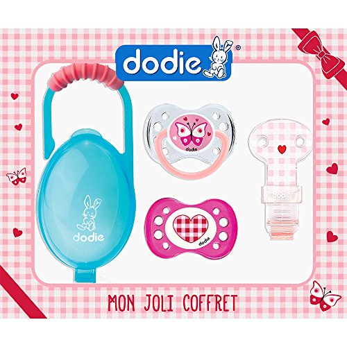 Studio : dodie Publisher : dodie Binding : Baby Product Product Description Dodie Mon Beau Coffret is the ideal gift to the babies of 6 months and more ! This box contains :- Dodie Anatomic Silicone Dummy 6 Months has been created by professionals. The Dodie Dummy meets the natural need to suckle of the baby and brings a comfortable sensation and immediate alleviation.Thanks to its ventilation holes, risks of irritation are reduced. Its fine teat respects the natural development of the baby mouth and its anatomic shape is reversible for a good placement.The tritan collar is comfortable, light and easy to stay in the mouth.Bisphenol A free. - Dodie Silicone Anatomic Dummy 6 Months x 2 was developed with experts to suit the natural suckling needs of your baby and brings a sensation of comfort and immediate soothing.This dummy is adapted for babies over 6 months and has:- ventilation holes: to reduce the risks of irritation, - a phosphorescent button: to find the dummy even during the night, - a symmetric and anatomic shape: reversible for a good position, - a fine teat: respecting the natural development of the baby's mouth, - a tritan shield: comfortable and light for an easy holding in the mouth.0% BPA.- Dodie Dummy Keeper is the ideal solution to keep clean the dummy within easy reach.This dummy keeper allows to transport the dummy everywhere. Thanks to it flex handle, it is easy to hook everywhere (pushchair, baby changing bag.).Hygienic side provided with a locking system that can carry the dummy away from all impurities.- Dodie Dummy Clip Practice And Hygienic is a dummy clip of innovative design which allows, thanks to a silicone ring, to adapt to every size of dummy.This new system a perfect fixation, an optimal security, allow to every dummy to stay clean and healthy for your baby. 0