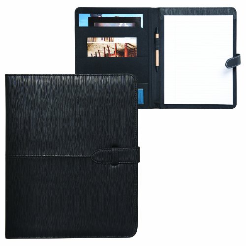 10" W x 12.5" H x 0.5" D. . Loop closure to keep contents secure. Inside slash pocket and elastic pen loop. Includes pen and paper pad. Individually gift boxed