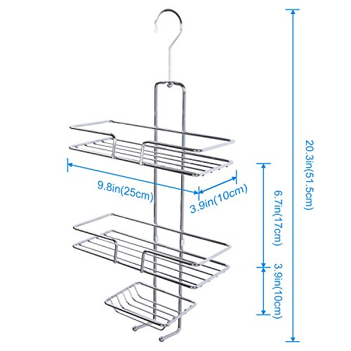 DIMENSIONS: The dimensions of the shower caddy are approximately 9.8 * 3.9 * 20.8inches/25 * 10 * 53cm (Include detachable hook).