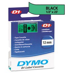 ** D1 Standard Tape Cartridge for Dymo Label Makers, 1/2in x 23ft, Black on Green **