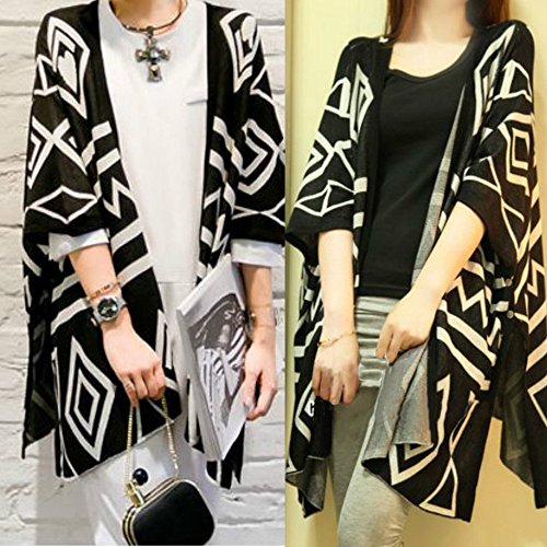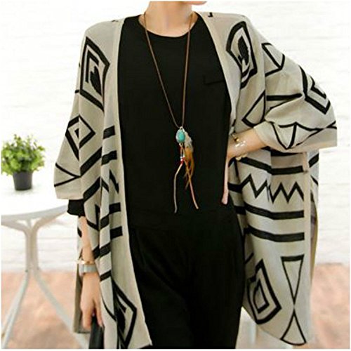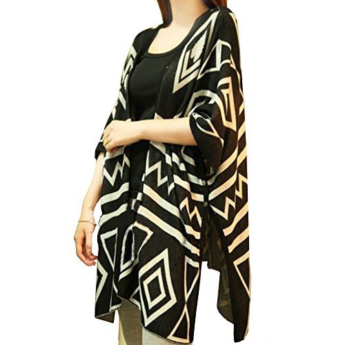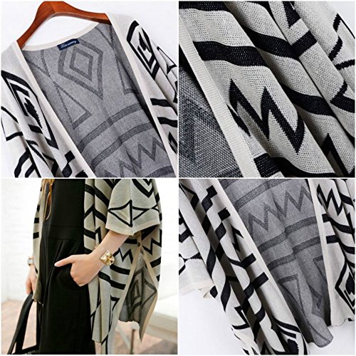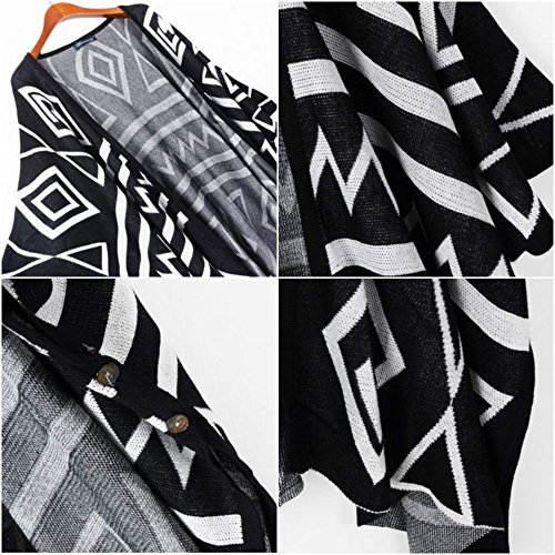 -. Title : (ニャンドゥー) Nyan-Deux レディース ネイティブ柄 ロング カーディガン ロングカーデ ニット ポンチョ コーディガン (ブラック,フリー)
