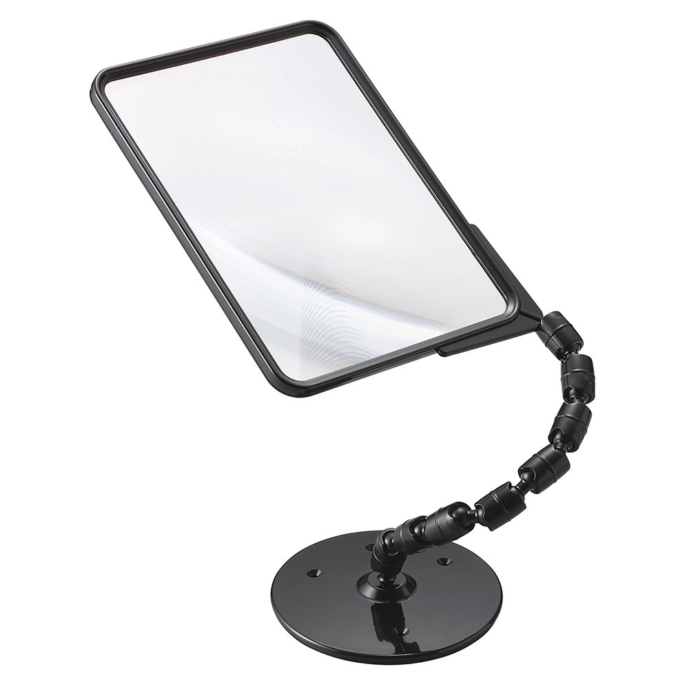 It is a stand loupe with arm that freely bends.