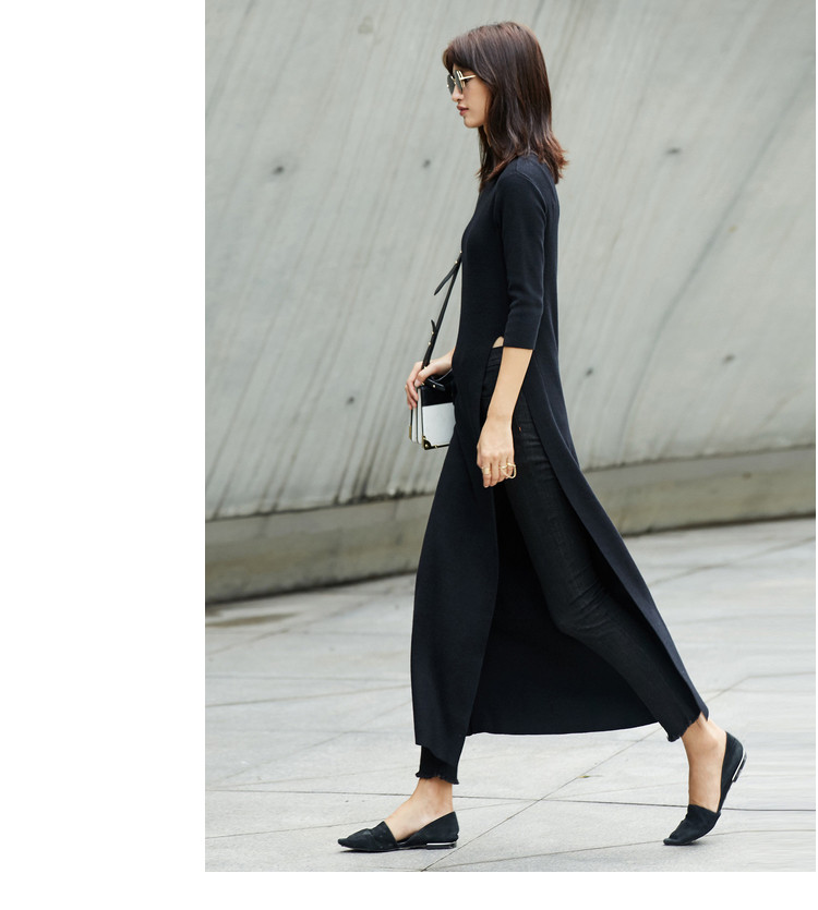 修长过膝针织垂软贴身现玲珑,
