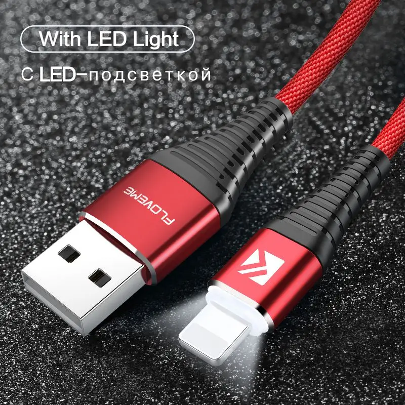 Item:FLOVEME LED USB Cable For iPhone X 7 6 8 Plus Micro USB Type C Cable F