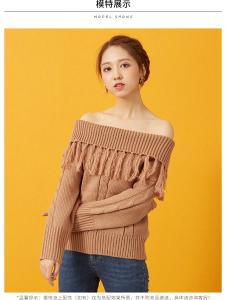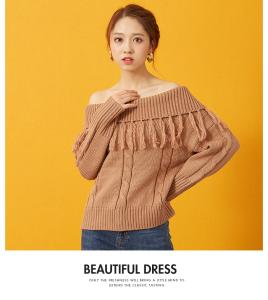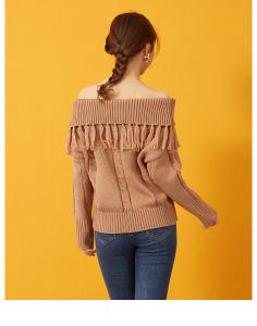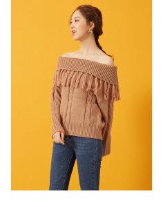 ニットトップス オフショルニット セーター 長袖 フリンジ 柄編み ニット ニットプルーバー エスニック 秋冬