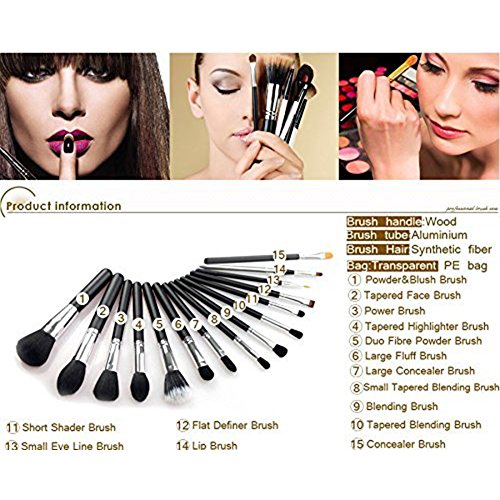 - Title : XMJPS Professional 15 Pcs Makeup Brushes Set Powder Foundation Eyeshadow Eyeliner Lip Brush Tool (Black-Silver)