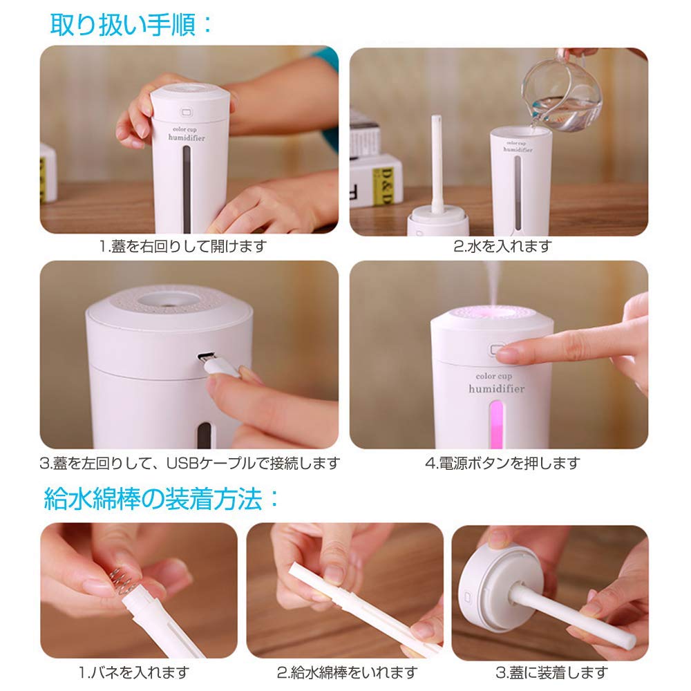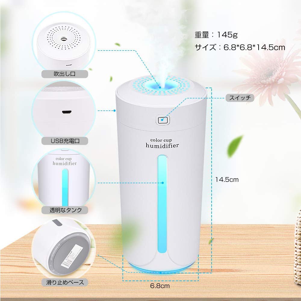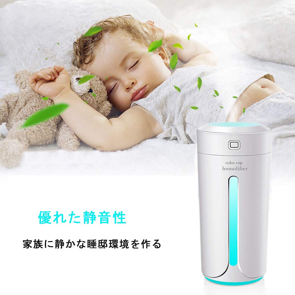 【静音加湿/USB給電】静音加湿器、動作音は35dB以下、とても静かで、睡眠を邪魔する心配はありません。子供やペットがいるご家庭でもご使用できます。USB給電口なので、コンピューターやモバイルバッテリーなどから電源を取れて、とても便利です。
