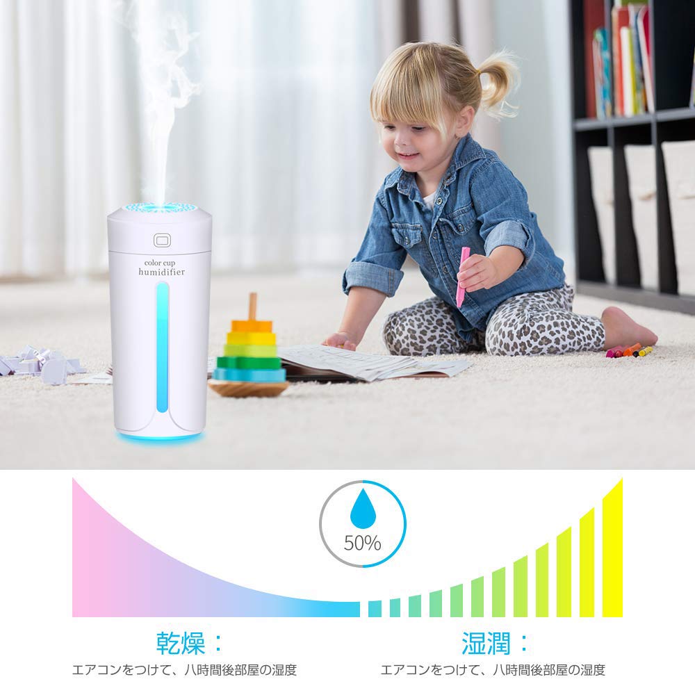 【乾燥や肌荒れを防ぐ】乾燥対策、お肌の乾燥を防ぐ加湿する同時に、リラックスな雰囲気を醸し出す。パソコンやタブレットの画面を長時間見つめていると目が乾燥して、加湿によりドライアイ(目の乾き)防止にも役立つ。それに、風邪、鼻づまり、アレルギー、喘息など病気を緩和でき、秋、冬季節に最適です。