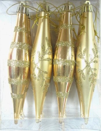 Queens of Christmas WL-FIN-12PK-SFLN-GO Decorative Finial Ornament with Snowflake and Line Glitter Design, Gold