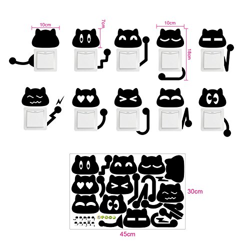 [GREAT VALUE] The Wall Stick size: 40 cm×50 cm (15.7 in × 19.7 in), and we sent you 10 pieces different pattern Cat Switch Stickers, to make your switches more interesting.