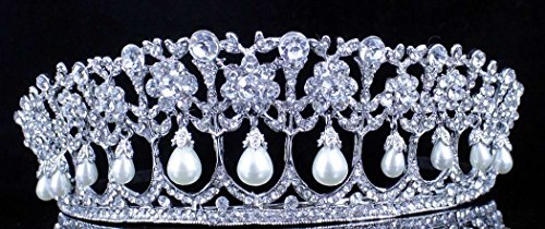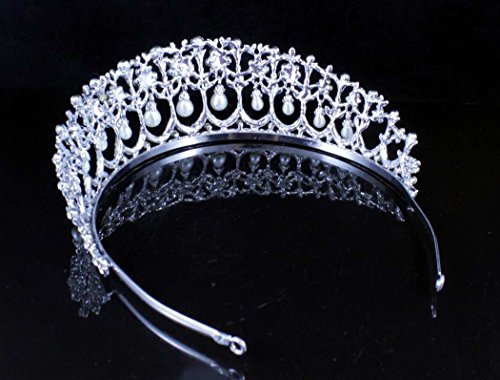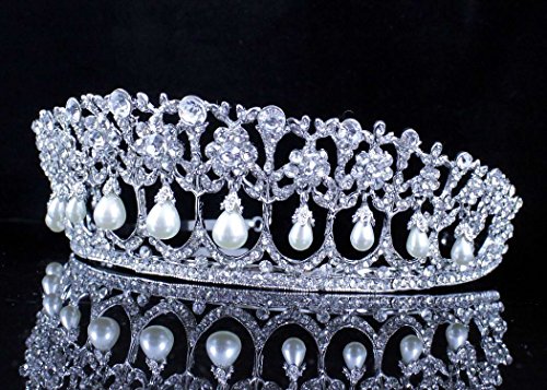 This is so gorgeous princess tiara. Glittery Clear Austrian rhinestones and imitated Pearls are set on Silver Tone metal. All the rhinestones shine a lot! Sides pin loops for extra security. This tiara is perfect for wedding, party, prom, pageant or any special occasions! Thanks for looking!Feature