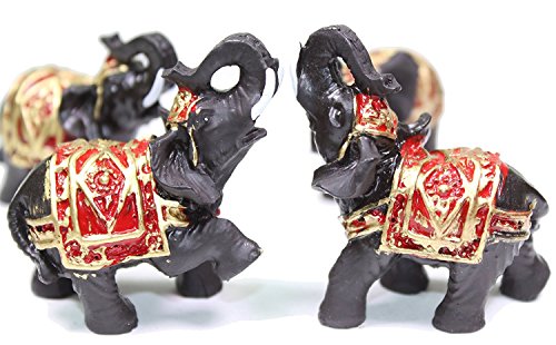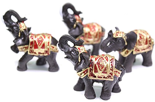 Feng Shui Set of 4 Black Thai Elephants Statues Wealth Lucky Figurines Home Decor Housewarming Congratulatory Gift US Seller