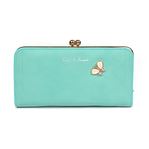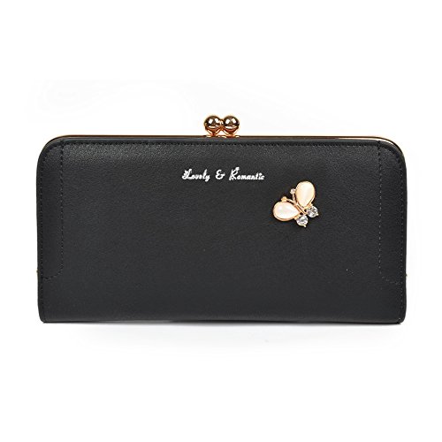 This Women¡¯s Wallet features with faux leather with a button closure for your important items safe inside. This wallet has 1 window ID, 11 slip card slots for your credit cards and bank cards.A full length slit pockets for cash, important papers, event tickets, and receipts with a slap closed,Purse Approximate Dimensions: 7.5"L X 3.7"W X 0.5"H (19cm X 9.5cm X 1.5cm)