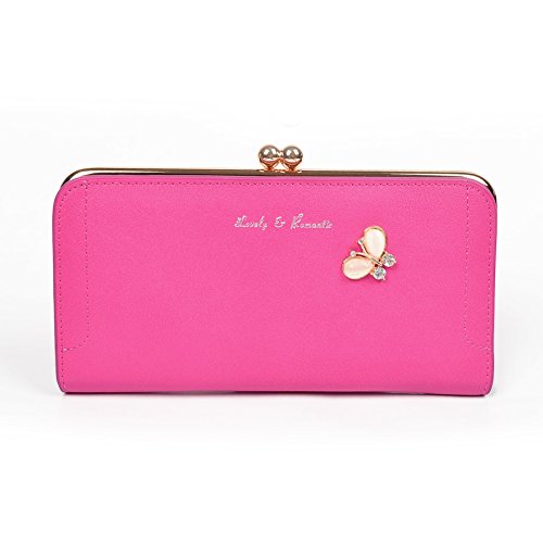 Damara Womens Crystal Butterfly Card Holder Bifold Purse Clutch Bag,Rose