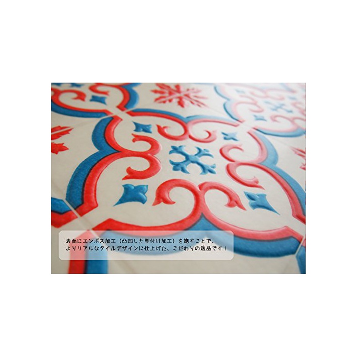 원본상품명: モロッコタイル柄 北?風 キッチンマット 60×230cm レッド色 クッションフロア 撥水 抗菌 防カビ 滑りとめシ?ト付