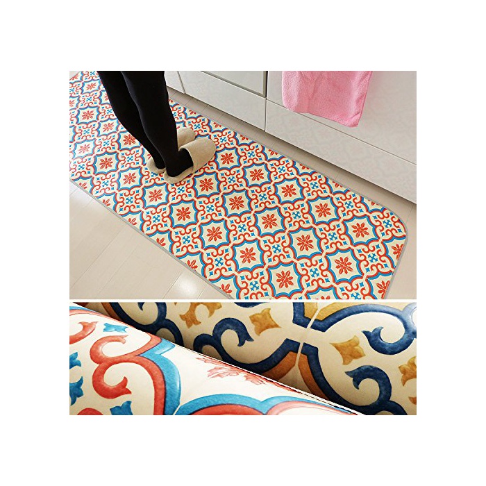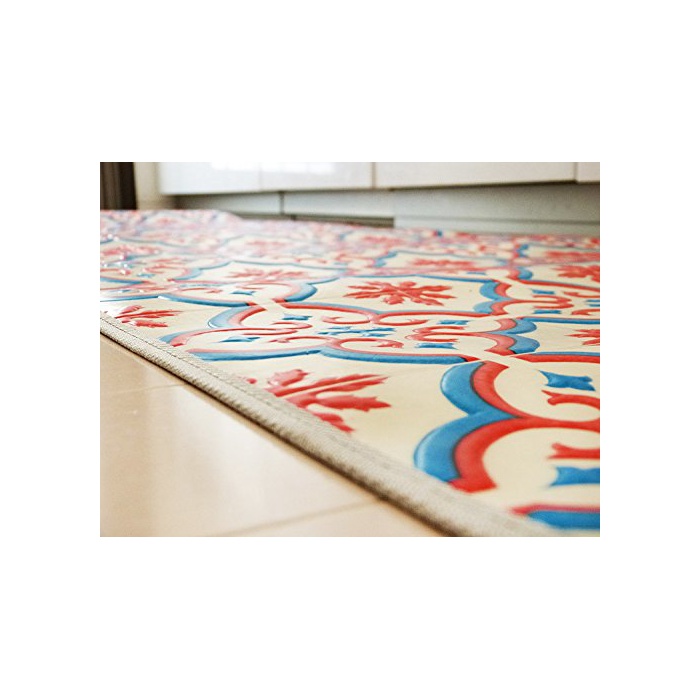 Ideal 모로코 타일무늬 북유럽풍 키친 매트 60×230cm 레드색 쿠션 플로어 발수 항균방 곰팡이 미끄러져 막아(멈추게 해) 씨트부