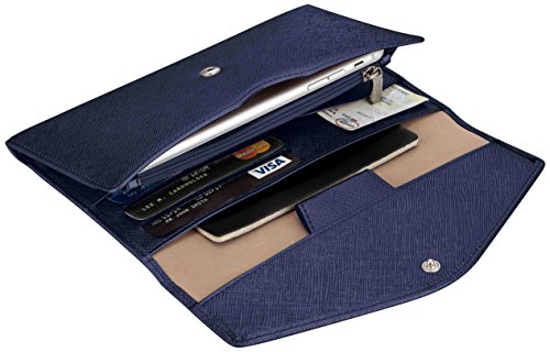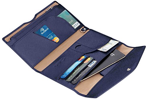 3. VARIOUS FUNCTIONAL SLOTS --1 passport pocket (max fit 2-3 passports), 3 credit card slots, 1 id slot, 1 sim card pouch, 1 ticket slot, 1 coupon compartment, 1 cellphone pouch (max 5.8 inches), 1 money & coins zippered pocket (fit U.S. money), 1 key holder and 1 pen holder;