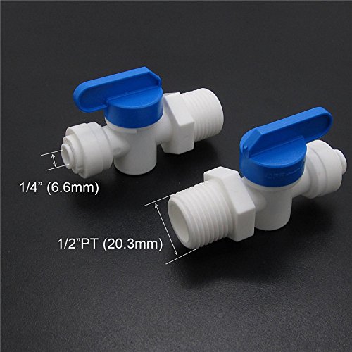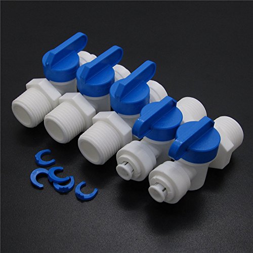 1/2" Male Straight 1/4" OD Tube Ball Valve Quick Connect Aquarium RO Water Pack of 5