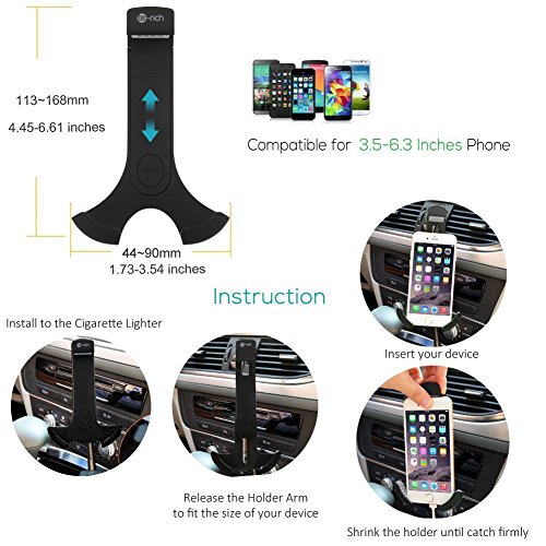 Te-Rich Newest Universal 2-in-1 Dual USB (3.1A Max) Cigarette Lighter Car Phone Holder Charger Mount for iPhone, Samsung Galaxy and More Android Smartphones - Lightning Cable Key Features:- Built-in Lightning Cable, no need to carry around an extra cable wherever you go, tangle-free feature keeps cord clean and tidy, no messy wires.