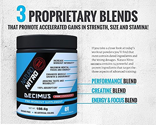 Decimus is not just for the energy! Containing one of the most muscle volumizing creatine blends around. Naturo Nitro Pre-Workout will have your muscles exploding from your body.