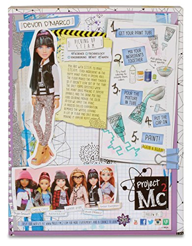-. Binding : Toy -. Brand : Project Mc2 -. EAN : 0035051543688 -. Feature : Create your own colorful puffy paint with Project Mc2's artist extraordinaire, Devon D'Marco / Comes with premium articulated Devon doll, dressed in a totally cool outfit / Includes accessories for a fun science activity: Puffy Paint / Experiment uses household ingredients / From the Netflix original series -. IsAdultProduct : 0 -. Label : MGA Entertainment -. Manufacturer : MGA Entertainment -. Model : 543688 -. MPN : 543688 -. PackageQuantity : 1 -. PartNumber : 543688 -. ProductGroup : Toy -. ProductTypeName : TOYS_AND_GAMES -. Publisher : MGA Entertainment -. Studio : MGA Entertainment -. Title : Project Mc2 Experiments with Dolls- Devon's Puffy Paint -. UPC : 035051543688 -. Warranty : 90 day warranty against manufacturer defects