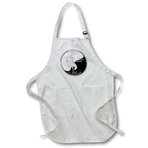 3dRose apr_57045_4 State Quarter of Wyoming PD-US Full Length Apron with Pockets, 22 by 30-Inch, Black