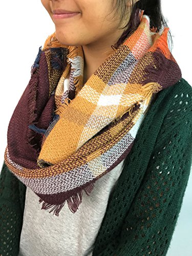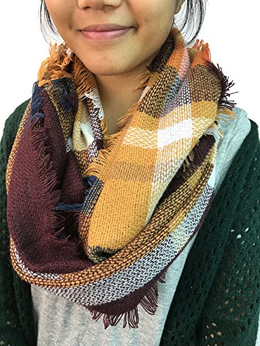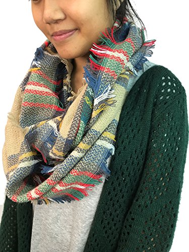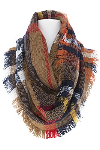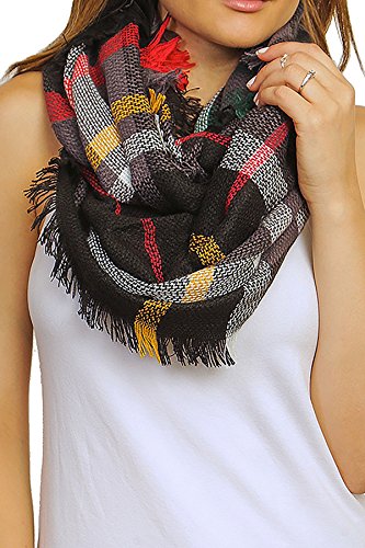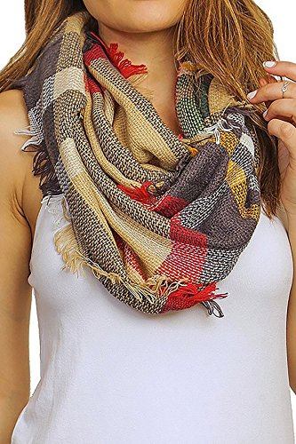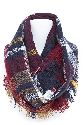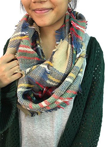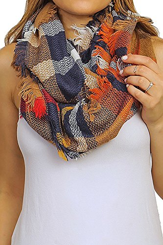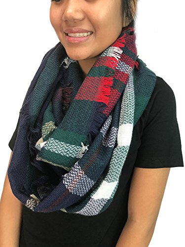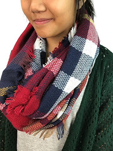 Women's Plaid Infinity Scarf with Fringed end Winter Multi-color Scarve NSF6492