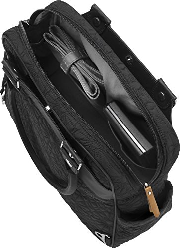 Versatile 2 ways to carry: On shoulder with padded handles or as backpack with straps that store discreetly in back magazine pocket when not in use