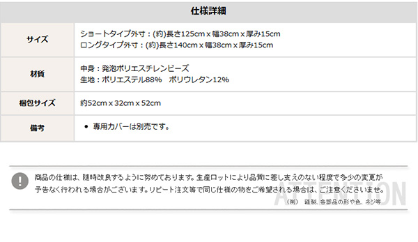 ●ショートタイプ:(約)125cmx38cmx15cm
