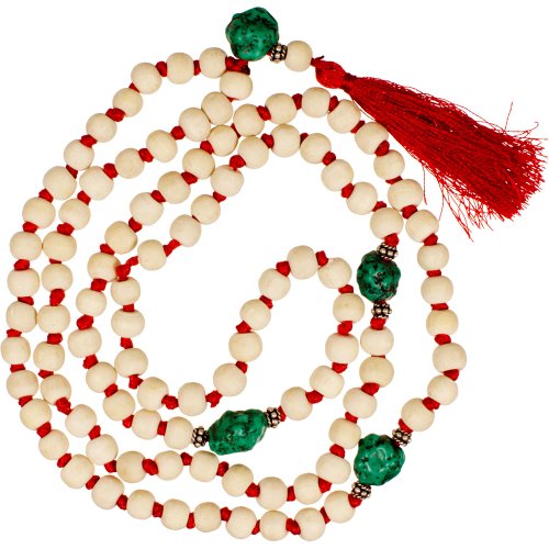 New Age Source Knotted White Tulsi Seed Mala with Turquoise Nuggets