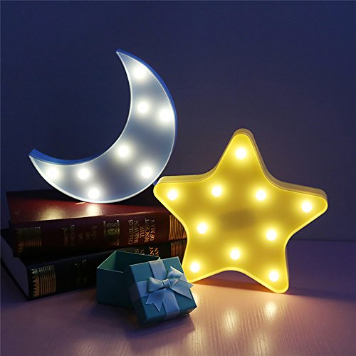 CSKB Cute LED Blue Moon Baby Night Light Lamp For Kids Battery Operated Pretty Moon Marquee Sign Decorative Night Lights Christmas Gift Table Wall...