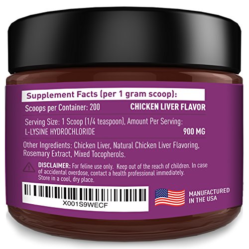 Strawfield Pets L-Lysine Powder for Catsは、ネコのヘルペスウイルス、免疫システム機能および全体的な健康を援助するネコのための毎日の補足です。当社の製品には、瓶あたり8オンス以上の粉末が含まれています。これは、大人用および老齢用のネコ向けに細心の注意を払って製造された200リットルのL-リシンです。私たちのおいしい鶏肝臓風味の粉末は、あなたの猫の健康のための免疫サポートの高用量、スクープあたり純粋なL - リジン塩酸900ミリグラム以上を備えています。