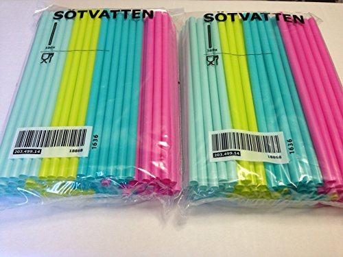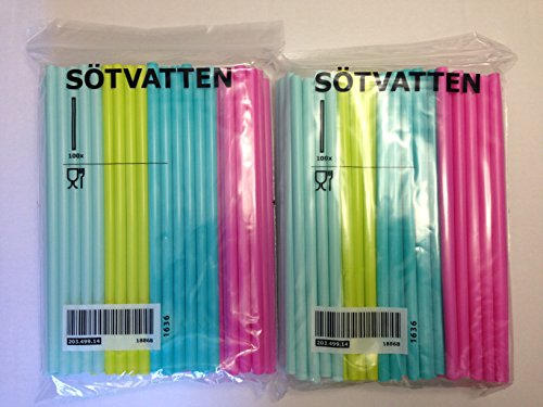 -. Brand : Ikea -. EAN : 0705548442847 -. Feature : The wide straw is ideal for thicker drinks such as smoothies. / Bright beautiful colors so kids can enjoy! / Two packages of 100! / Essential for any family home, especially with children! -. ProductGroup : Kitchen -. ProductTypeName : KITCHEN -. Title : Ikea Sotvatten Straws 100x2 (200pack) Baby blue, Lime, Pink & Blue -. UPC : 705548442847