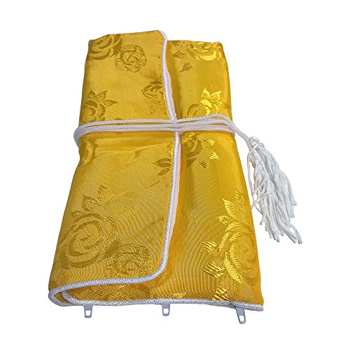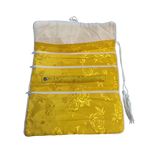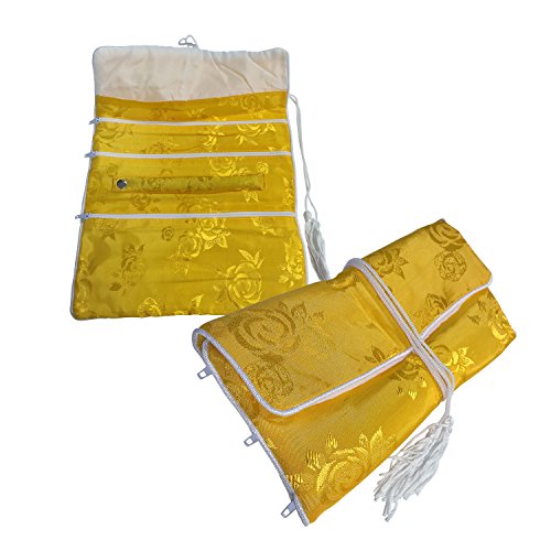 Silk Brocade Jewelry Organizer Travel Roll - Yellow with White Accents